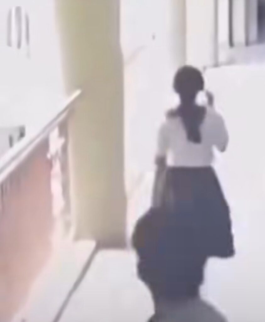 सीसीटीव्ही फुटेजमध्ये दिसून येते की, विद्यार्थिनीने दुपारी साडेबारा वाजता लॉबीमध्ये खेळण्यात रमलेल्या स्थितीत आपला कीचेन हातात घेत शांतपणे फिरत होती. काही क्षणांतच तिने उडी मारली. एका मैत्रिणीने तिला रोखण्याचा प्रयत्न केला, मात्र यश आले नाही.