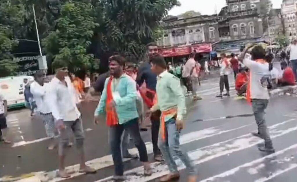 मुंबई : आरक्षणाच्या मागणीसाठी राज्यभरातून मोठ्या संख्येने मराठा बांधव मुंबईत दाखल झाले आहेत. आंदोलनाचा आज तिसरा दिवस असून, आंदोलकांच्या विविध हालचालींचे अनेक व्हिडीओ सध्या सोशल मीडियावर व्हायरल होत आहेत. त्यामधीलच एक व्हिडीओ विशेष चर्चेत आला आहे.