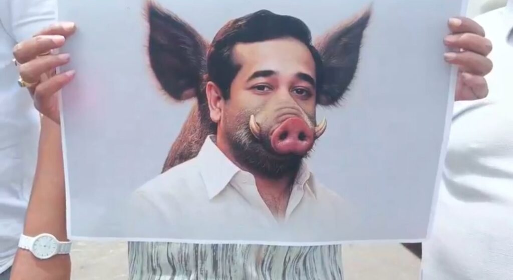 आंदोलनादरम्यान ठाकरे गटाच्या कार्यकर्त्यांनी नितेश राणे यांच्या फोटोला वराहाचे तोंड लावून विडंबनात्मक आंदोलन केले. त्यामुळे हा प्रकार शहरात चर्चेचा विषय ठरला आहे.